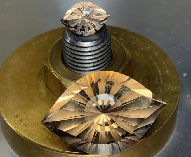 One of his signature styles—the "eye design"—features 145 individual facets, each hand-cut and polished multiple times. The process involves several stages: initial shaping with diamond-impregnated sintered laps each with a finer diamond size than the last, followed by pre-polishing on a soft alloy lap, and finishing with a final polish using ultra-fine 0.25-micron diamond paste.