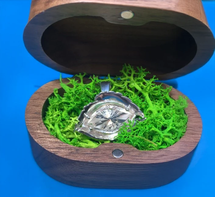 This first jewellery design—one of many to come—is a tribute to the spirit of nature: a unified, living orchestra that surrounds us and of which we are an inseparable part. It represents our collective creator, peering through the leaves of the Rowan tree. As we gaze into the gemstone, our reflection appears—we become the "little person in the stone." In that moment, a quiet union forms between ourselves and the soul of the natural world.